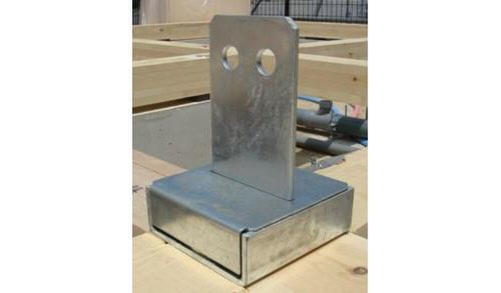 「TロックII」は、ホールダウン金物の約2倍の強度があり、接合部の強度を増加させ、地震や風圧がかかった場合の柱の抜けを防ぎます。