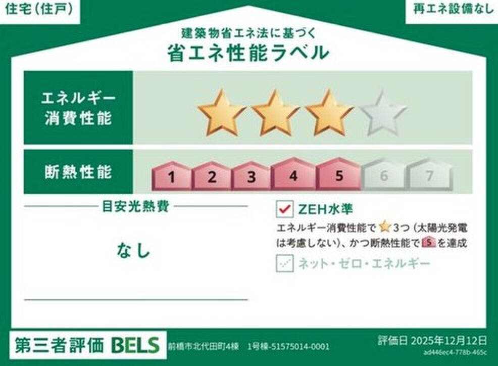 - 断熱性能:5段階/7段階 ※「省エネ性能ラベル」は特定の住戸の性能を示し、全ての住戸の性能を示していない場合があります。