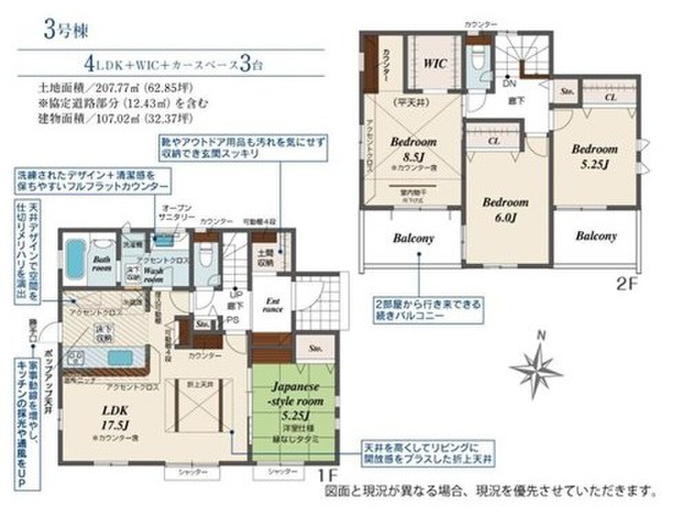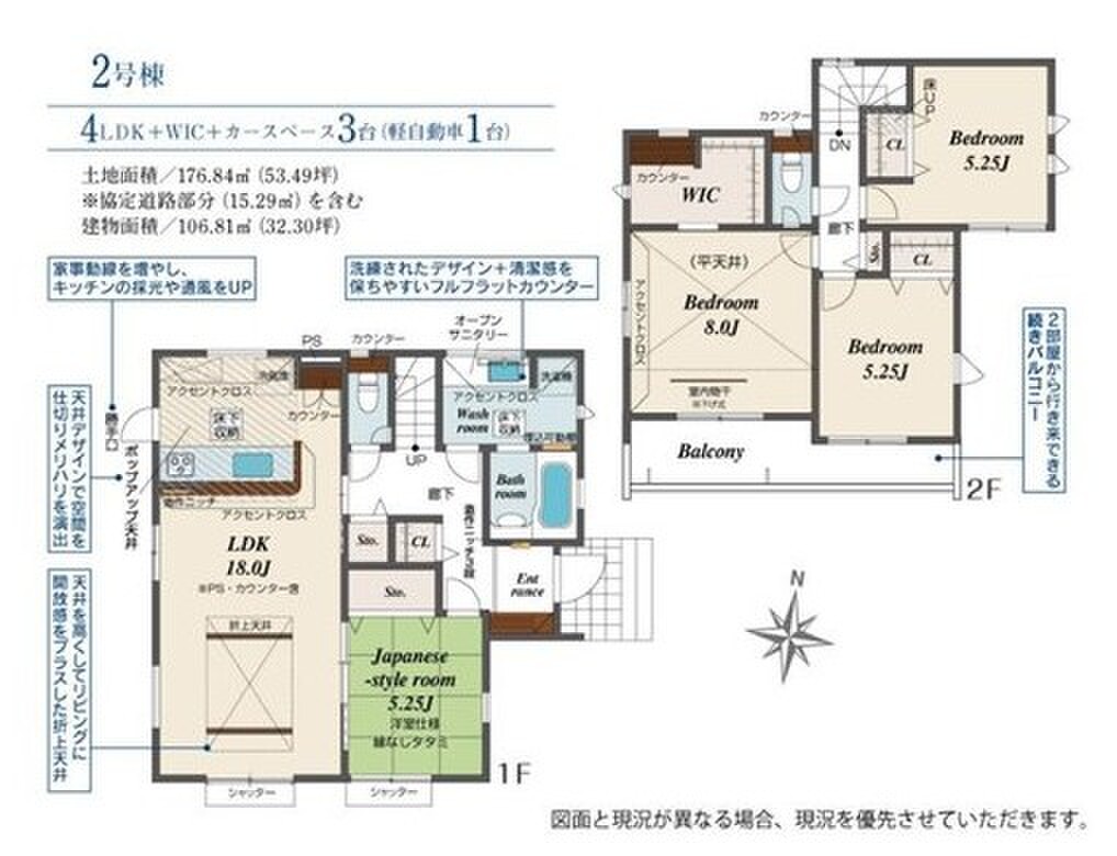 | 建物面積 | 106.81m2~107.03m2(32.30坪~32.37坪) | 土地面積 | 176.84m2~207.77m2(53.49坪~62.85坪) |