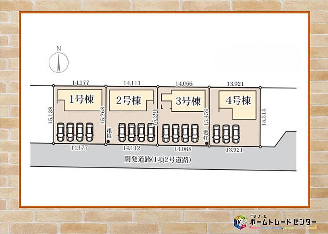 | 駐車場 | 3台 ~ 4台(1・2・3号棟(4台) 4号棟(3台)) | 道路の幅員 | 道路幅:6m、アスファルト舗装、南側約6.0m町道 |