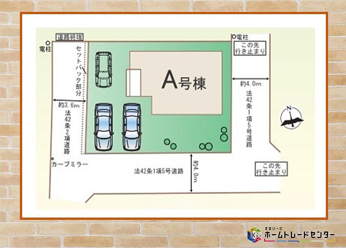| 駐車場 | 3台(※車種による) | 道路の幅員 | 道路幅:3.6m~4m、アスファルト舗装、東側約4.0m公道(法42条1項5号道路)※備考欄に追記 |