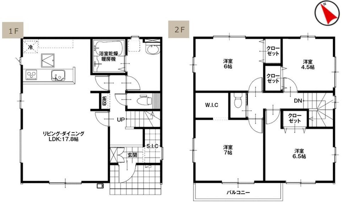 | 建物面積 | 103.5m2・105.16m2(31.30坪・31.81坪) | 土地面積 | 197.63m2・243.73m2(59.78坪・73.72坪) |
