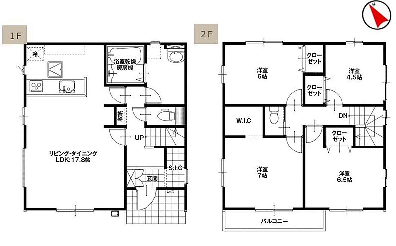 | 建物面積 | 103.5m2・105.16m2(31.30坪・31.81坪) | 土地面積 | 197.63m2・243.73m2(59.78坪・73.72坪) |