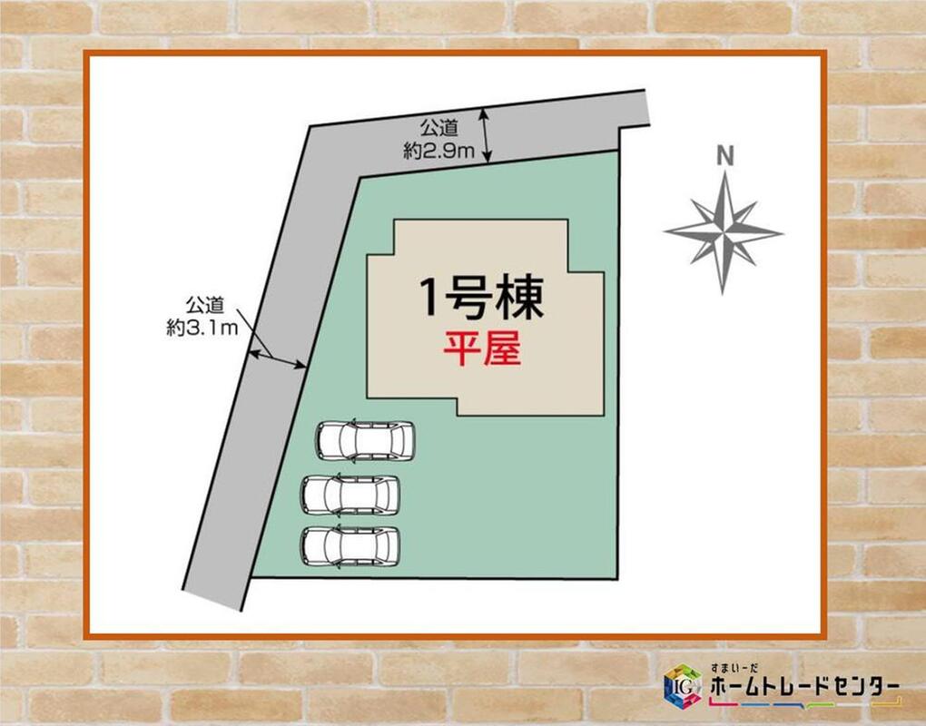 | 駐車場 | 3台 | 道路の幅員 | 道路幅:2.9m・3.1m、アスファルト舗装、西3.1m、北2.9m公道 |