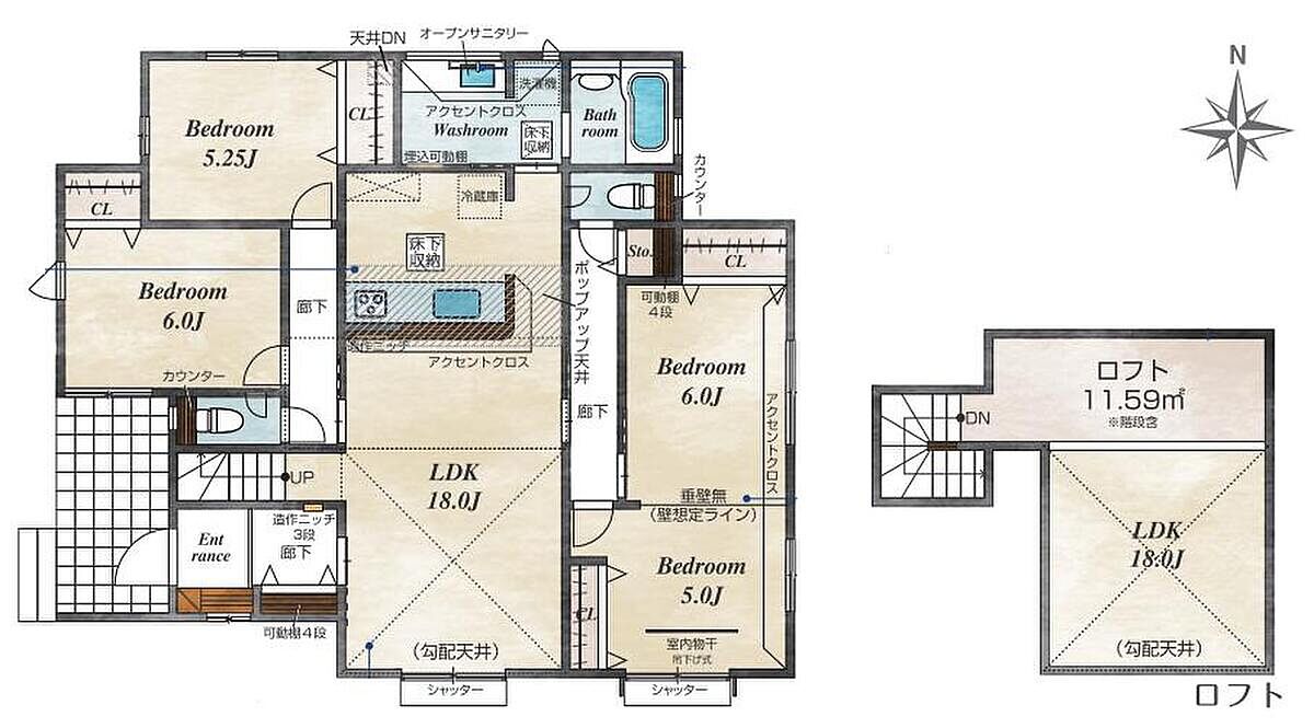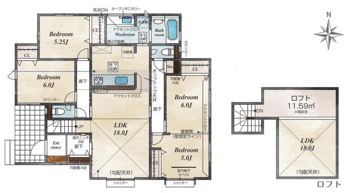 ・生活スタイルに合わせて使えるロフト付きの間取り