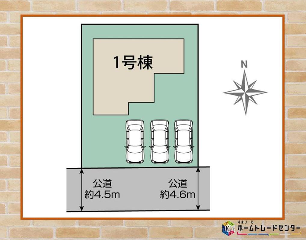 | 駐車場 | 3台 | 道路の幅員 | 道路幅:4.5m~4.6m、アスファルト舗装、南4.5m~4.6m公道 |