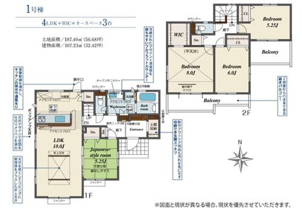 | 建物面積 | 107.23m2(32.43坪) | 土地面積 | 187.4m2(56.68坪) |