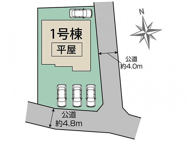 | 駐車場 | 4台 | 道路の幅員 | 南4.8m公道、東4.0m公道 |