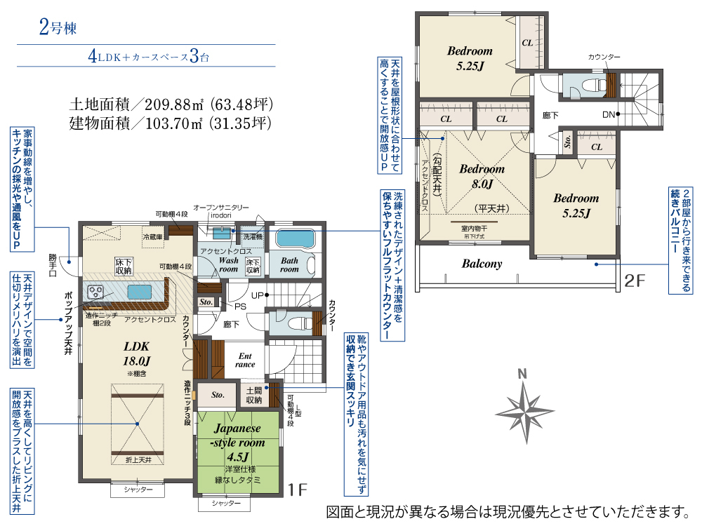 | 建物面積 | 92.74m2(約28.05坪)~103.92m2(約31.43坪) | 土地面積 | 209.88m2(約63.48坪)~239.13m2(約72.33坪) |