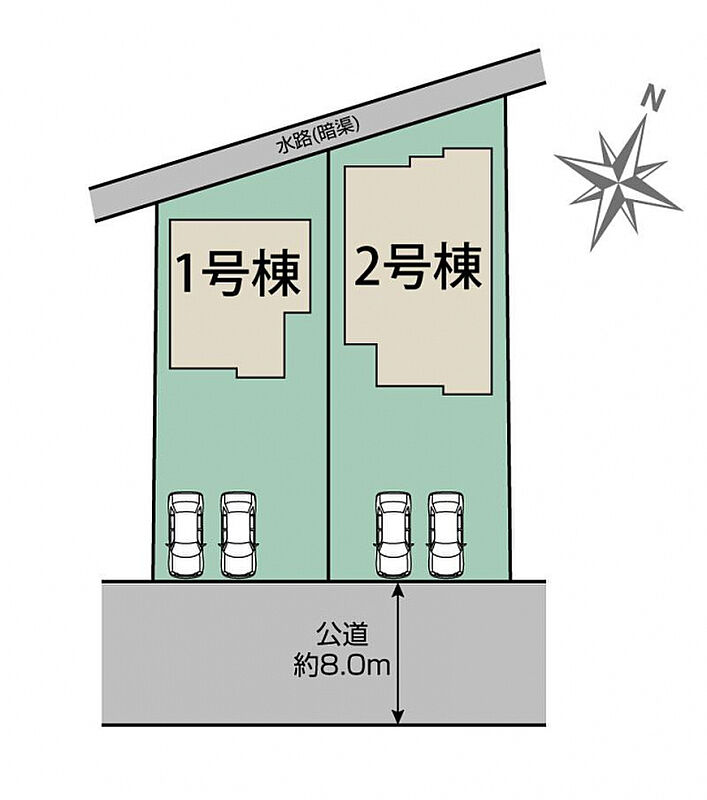 | 駐車場 | 2台 | 道路の幅員 | 南東8.0m公道 |