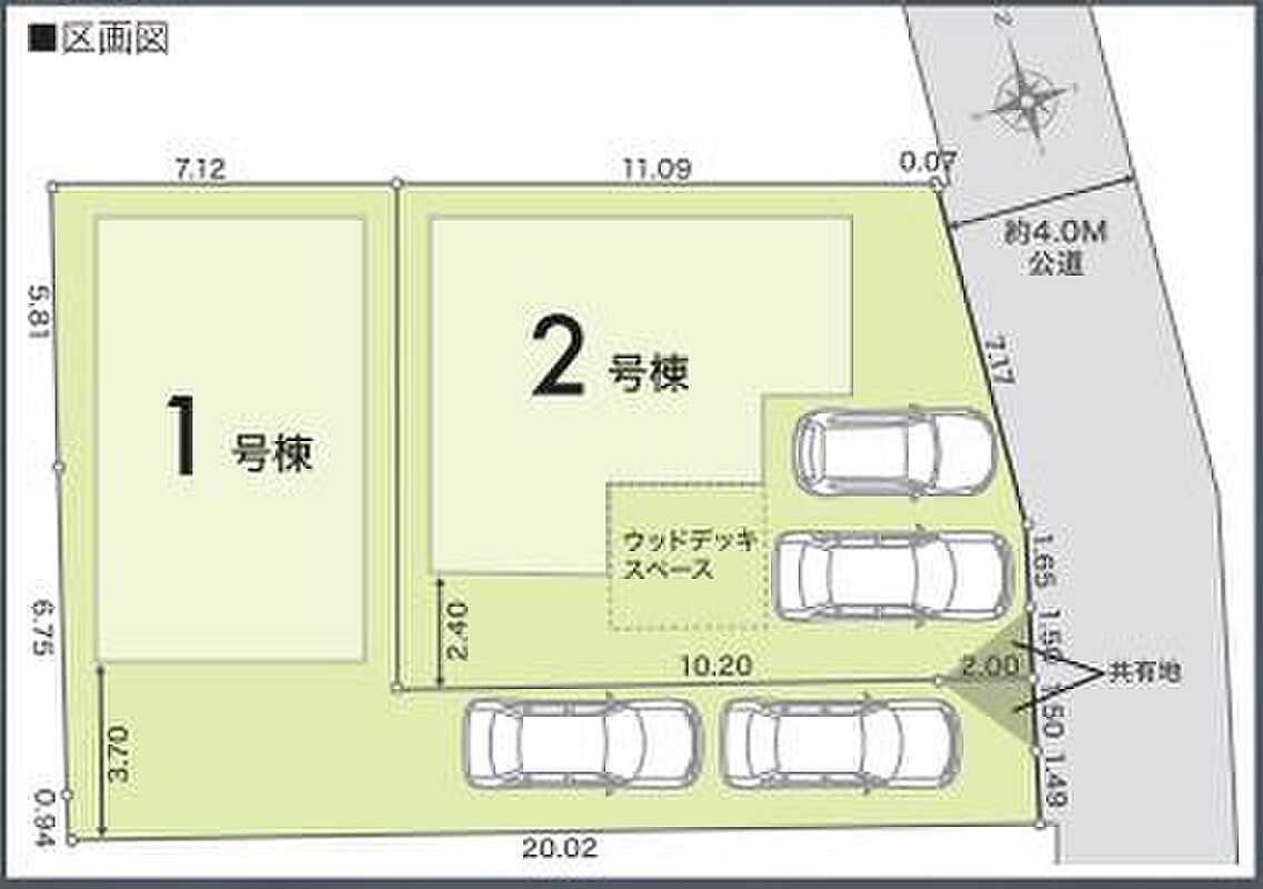 | 駐車場 | 2台 | 道路の幅員 | 東側 4m |