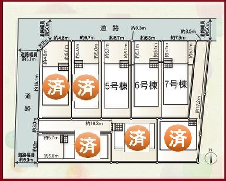 | 駐車場 | 2台 | 道路の幅員 | 北側5m 西側5m |