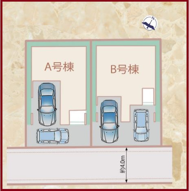 | 駐車場 | 2台 | 道路の幅員 | 南側4m |