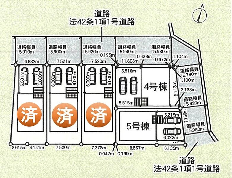 ■各棟2台の駐車場・5.9m幅の前道路で出入りもスムーズにできます