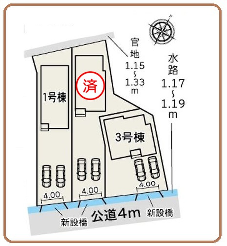 | 建物面積 | 105.78m2・113.44m2 | 土地面積 | 149.59m2・174.43m2 |