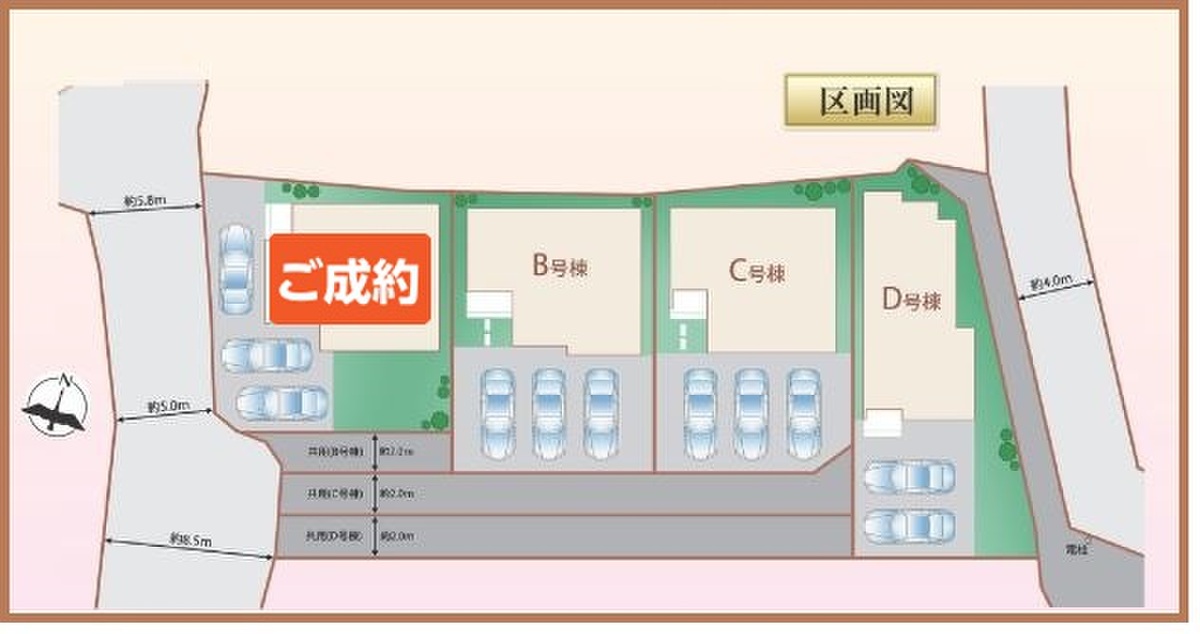 | 駐車場 | 2台 ~ 3台(車種により2台) | 道路の幅員 | 西側5~8.5m |