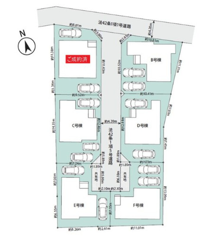 | 駐車場 | 2台 | 道路の幅員 | 西側4.2m(B・D・F号棟) 東側4.2m(C・E号棟) |