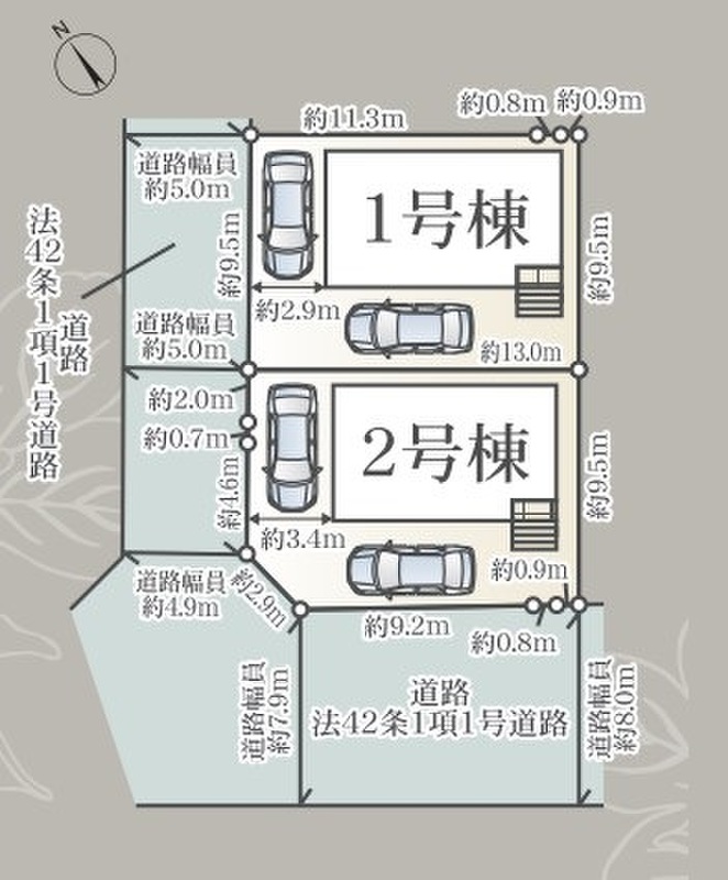 ■2号棟は2方向接道の角地です。セカンドカーにも便利な2台の駐車場