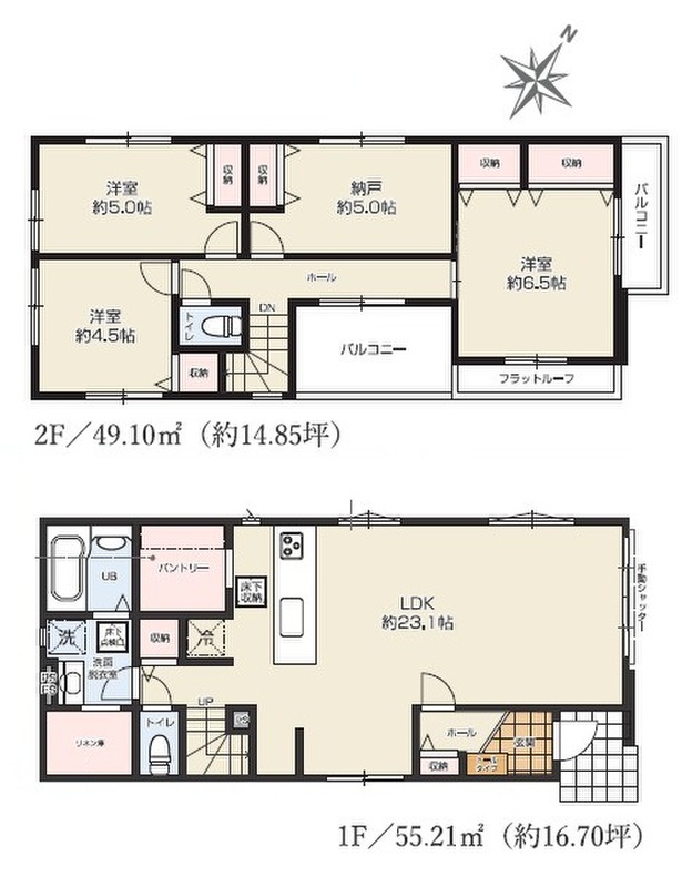 またパントリーやリネン庫など豊富な収納スペースを完備ゆとりある住空間となります