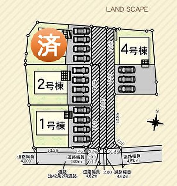 | 駐車場 | 3台 ~ 4台 | 道路の幅員 | 南側4~4.6m |