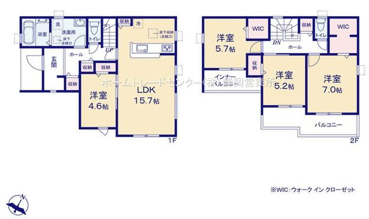 全室南向きとなる明るい住空間が広がります。全居室収納!2階の2洋室は大容量のウォークインクローゼットを完備しスッキリとした室内を保てます