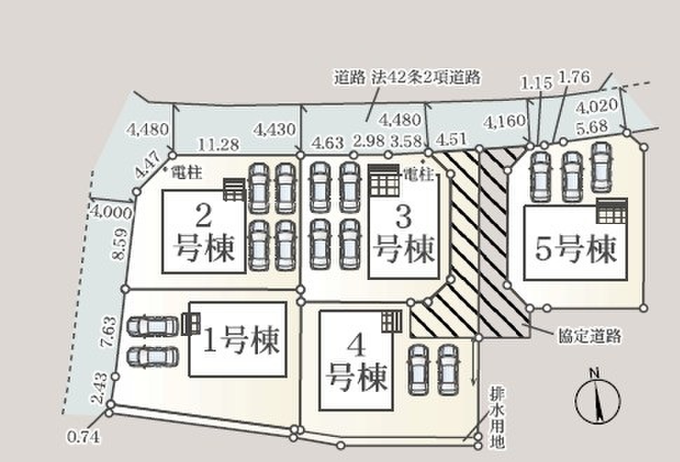■各棟2~4台の駐車場を完備した50~74坪のゆとりある敷地面積です