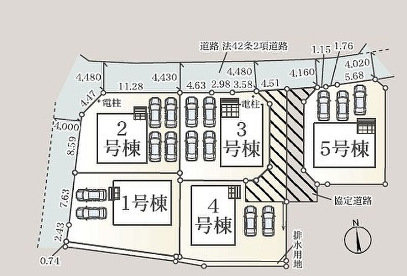 ■各棟2~4台の駐車場を完備した50~74坪のゆとりある敷地面積です