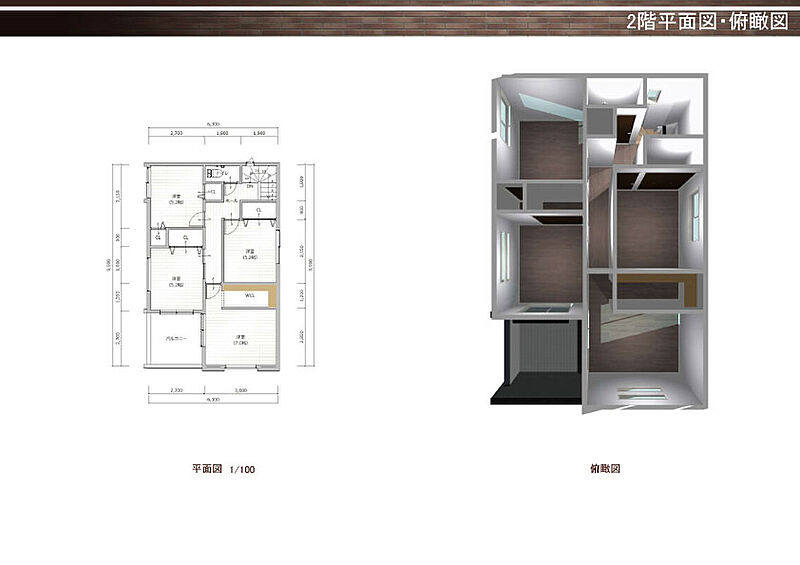 K号地 間取り 2階平面図・鳥瞰図 価格 4080万円 建物面積 115.83m2 土地面積 83.3m2 -
