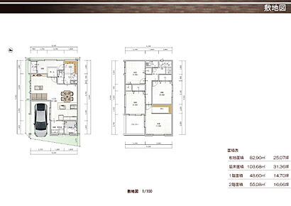 | 建物面積 | 92.6m2 | 土地面積 | 82.87m2(25.07坪)~83.30m2(25.19坪) |