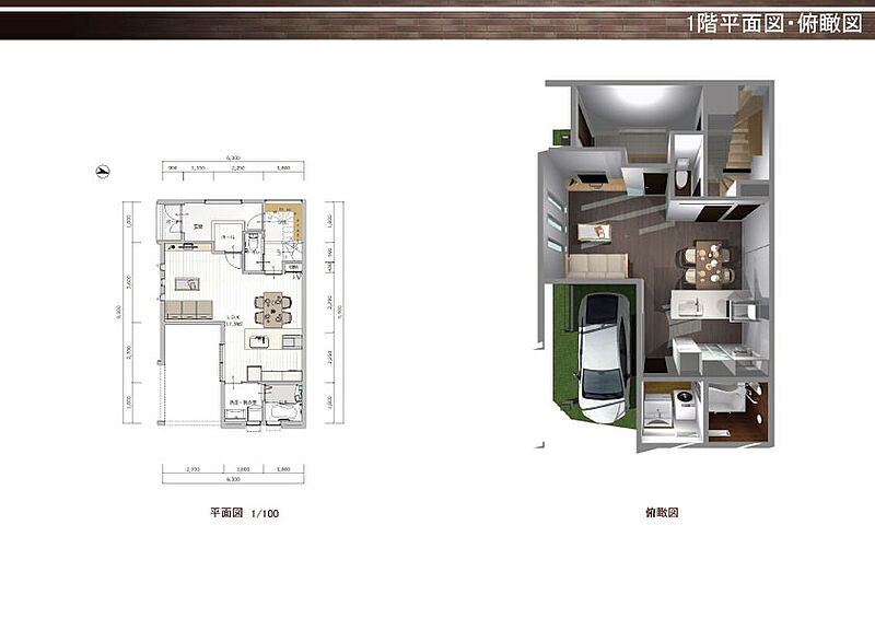 K号地 間取り 1階平面図・鳥瞰図 価格 4080万円 建物面積 115.83m2 土地面積 83.3m2 -