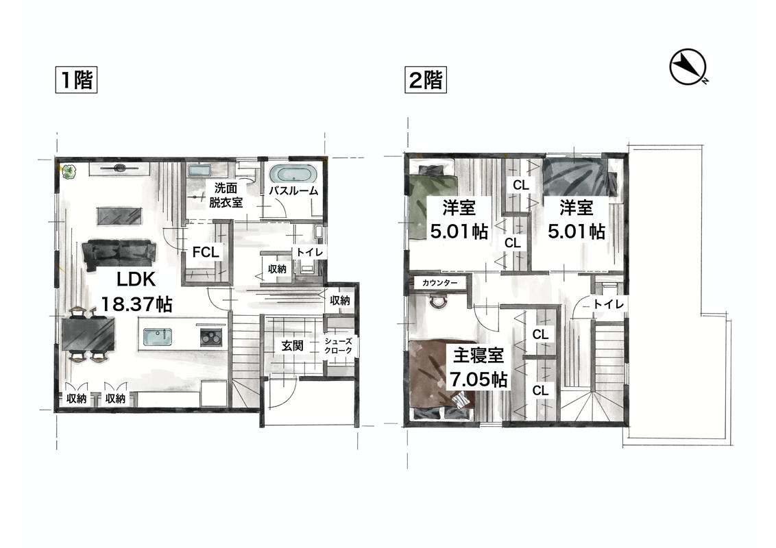 - ※完成予想図やCG合成画像は、門塀・植栽・庭・外観等、実際とは多少異なる場合があります。