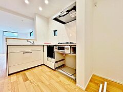 3口コンロや食洗機、スライド収納付きで、毎日のお料理がもっとスムーズに。