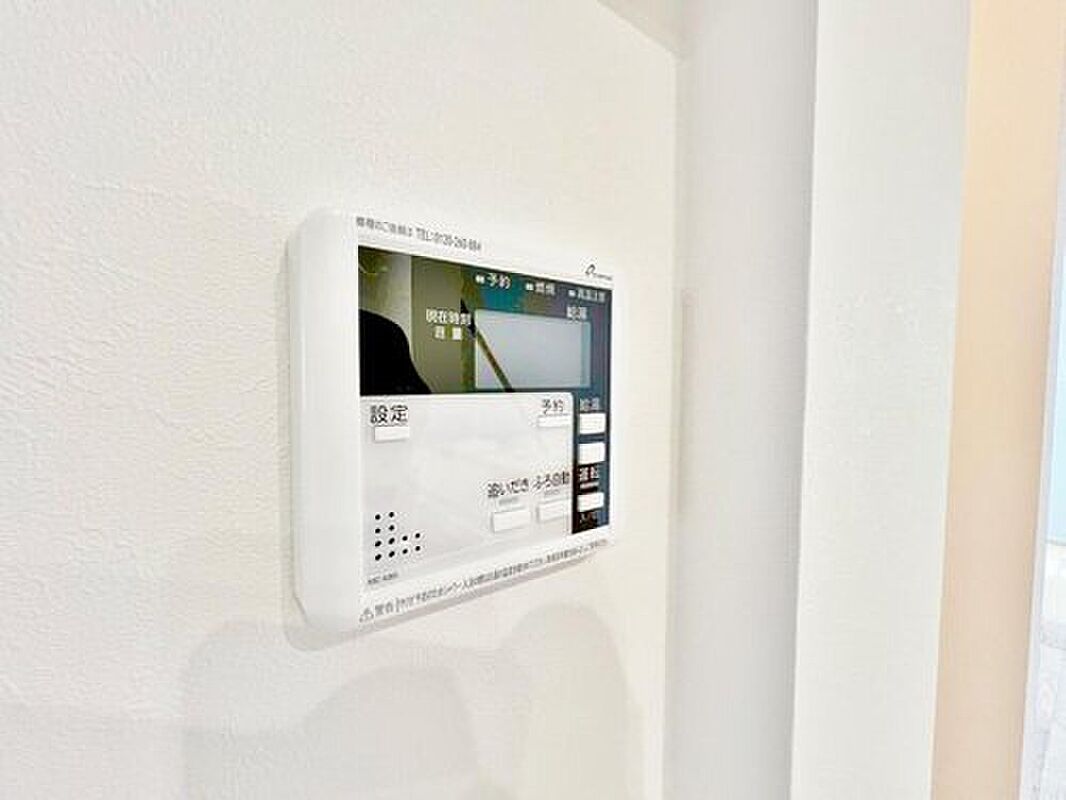お風呂場と台所に操作リモコンがあり、キッチン近くにある給湯リモコンは、お料理の最中でもリビングで寛いでいるなかでもボタン一つで簡単に沸かせて便利。