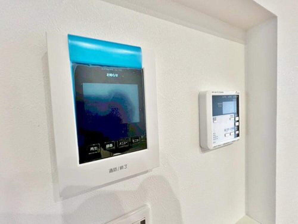 「見える安心」をカタチに。誰が来てもわかる様にモニター付きインターホンを設置。家事導線を考慮した個所に設置し、防犯性と利便性に優れ快適と安らぎを合わせた優しい設計。