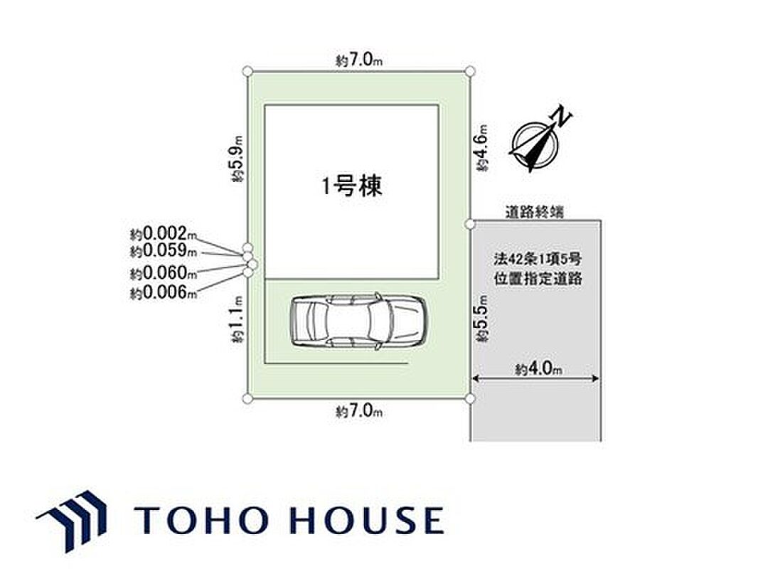 | 駐車場 | 1台 | 道路の幅員 | 東4m幅 |