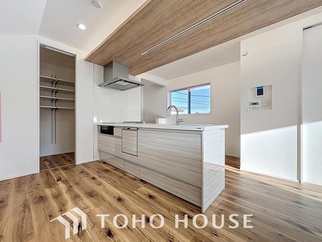 キッチン横に設けた収納スペースで、日用品のストックもすっきり。防災備蓄にも役立ちます。