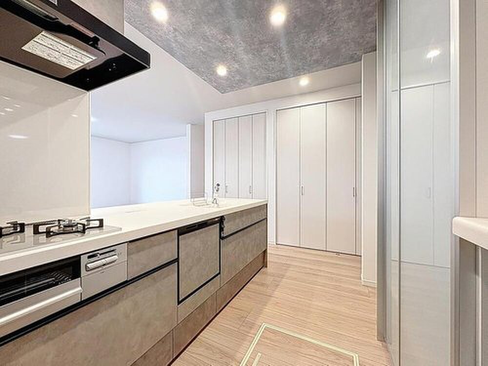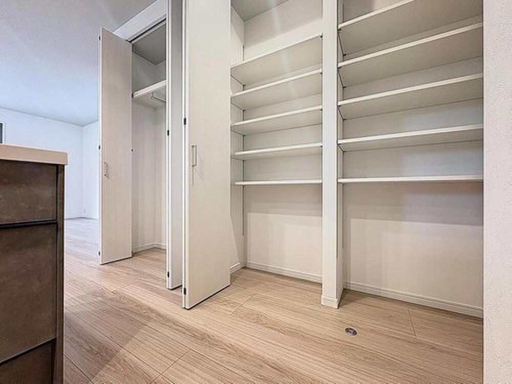 キッチン横にはパントリー収納を設置。効果的な日常備蓄ができ、日々の収納だけでなく、防災面での備えとしても有効活用できます。