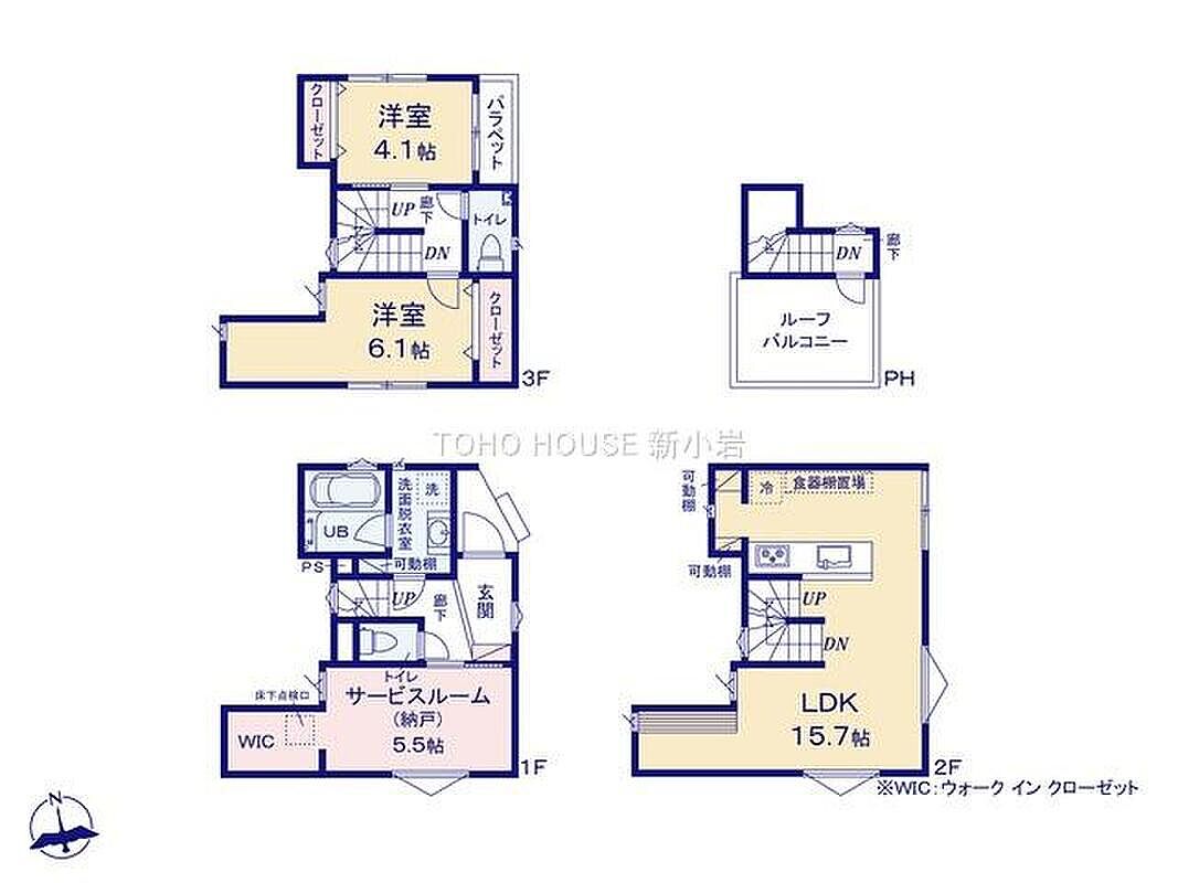 新築一戸建て 【東武伊勢崎線東向島駅徒歩5分】屋上ルーフバルコニー付・乾太くん付