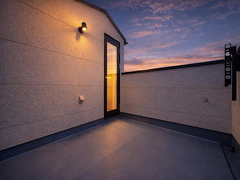 【この物件について】玄関の扉を開けると、そこには都市の喧騒から切り離された穏やかな時間が流れる空間。日常の買い物は徒歩3分のスーパーへふらりと立ち寄り、夕暮れ時にはルーフバルコニーから茜色に染まる空を静かに見上げる。