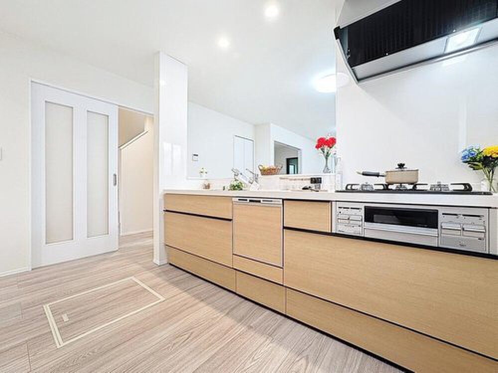 ・LDK15畳超・対面キッチン、会話が途切れにくい家事動線