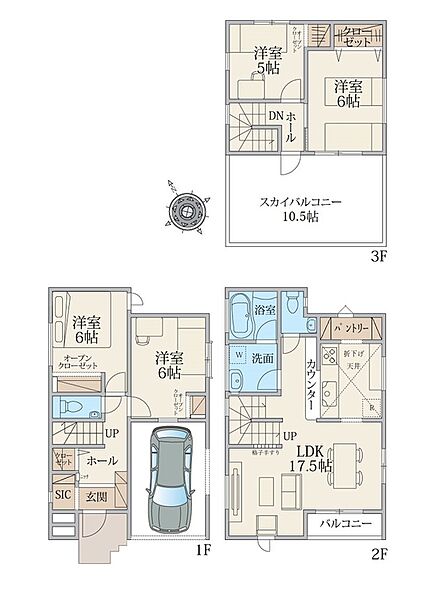 アクセス便利、船橋ICまですぐ!天空の家スカイバルコニー。全居室5帖以上のゆとりでレイアウト自由自在。全室収納あり!プライバシーを守れる2階LDK、水回り集約設計で家事の時短に。
