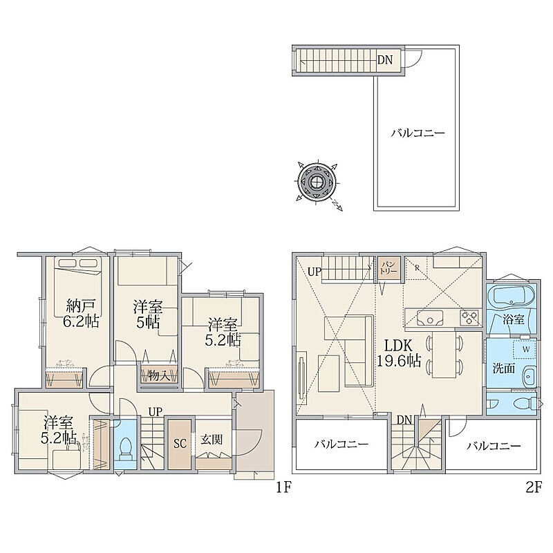 休日が楽しみになる屋上庭園のある家!家族で過ごす特別な住空間。2階リビングは光が差し込み、圧迫感のない広々とした空間を演出!全居室収納完備!水回りもまとまっており家事も時短になります。
