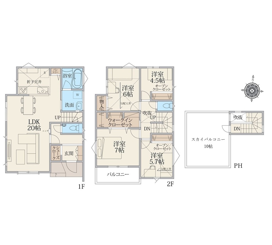 自慢のスカイバルコニーは10帖の広さ!天空の家で上質な時間を。高い断熱性能を備えたZEH水準住宅!オール電化で光熱費も安心。LDKは広々20帖!WIC等全居室収納完備で室内を有効活用!