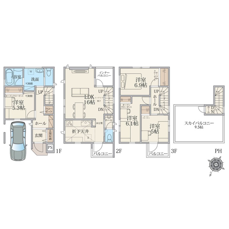 | 間取り | 4LDK | 建物構造 | 木造3階建 |