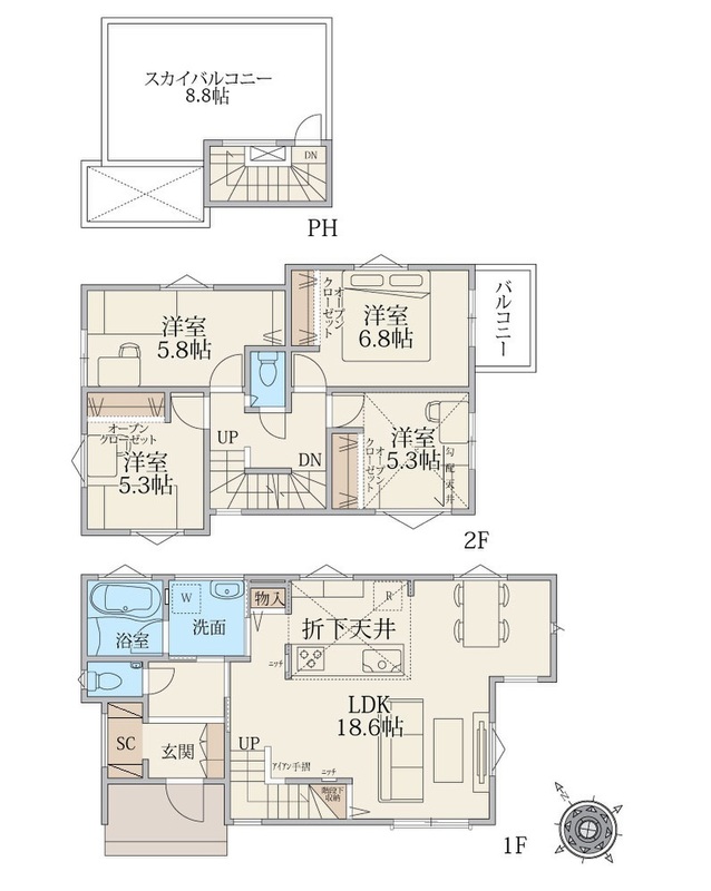 新築一戸建て 【上質な街区で叶える理想の住まい 天空の家】千葉市花見川区幕張町2丁目 新築戸建