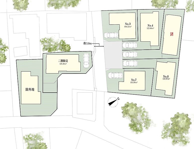 - ※完成予想図やCG合成画像は、門塀・植栽・庭・外観等、実際とは多少異なる場合があります。