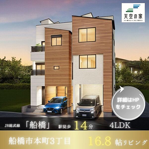 新築一戸建て 【天空の家で温かみのある特別な暮らし】船橋市本町3丁目 新築戸建