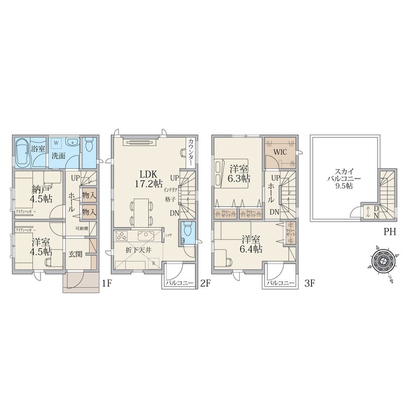 お荷物がすっきり片付くWIC等適材適所に収納あり!掃除も楽々!北欧系ノルディックスタイル!シンプルで清潔感に溢れたデザイン。