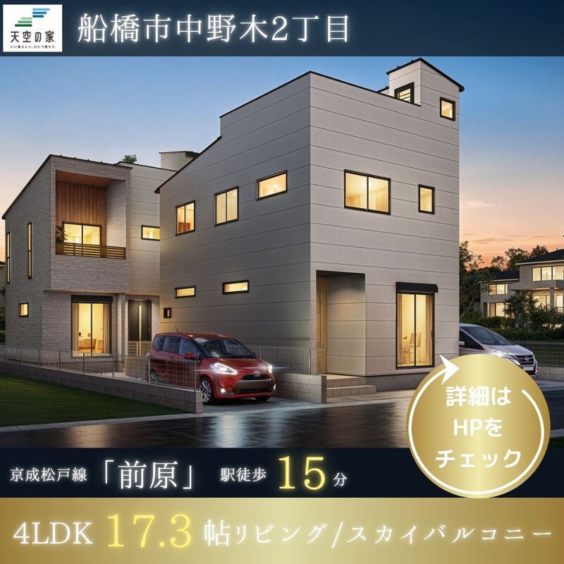 新築一戸建て 【天空の家 敷地面積38坪のゆとりの住空間】船橋市中野木2丁目 新築戸建