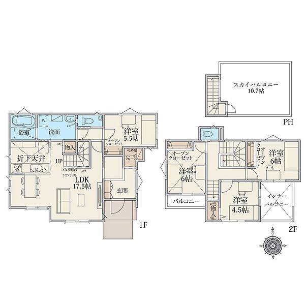 全居室収納!更にシューズクロークと1F物入でスッキリ片付く。10.7帖のスカイバルコニーは目の高さまで壁があるので視線を気にせず様々なイベントをすることができます!年中通して楽しめる!